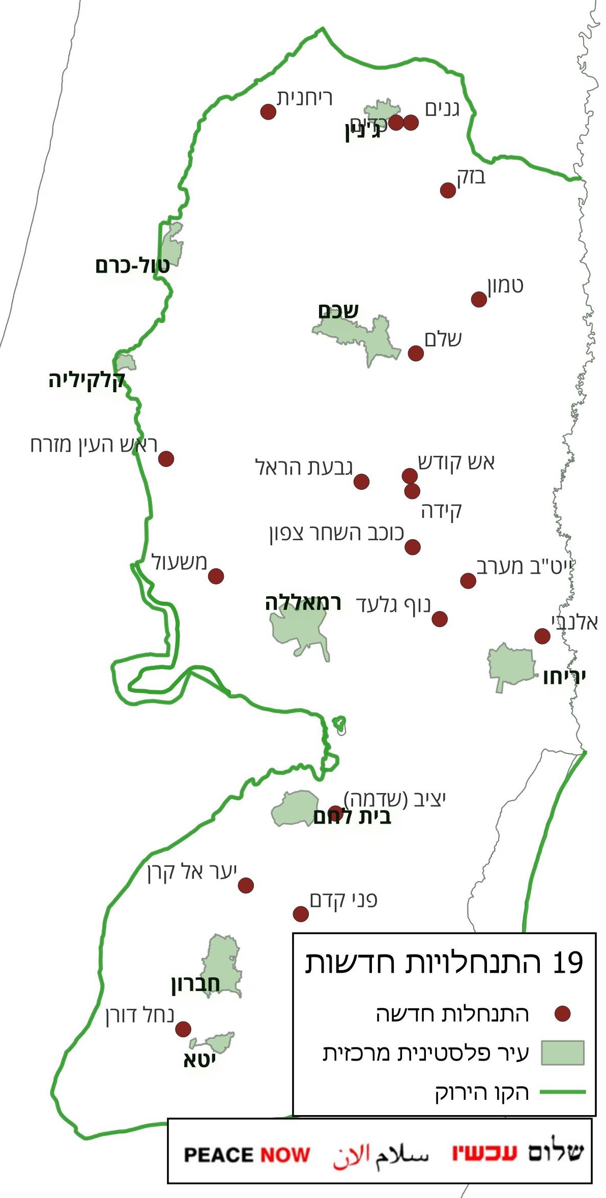 על פי פרסומים בתקשורת, הקבינט המדיני-ביטחוני החליט ביום חמישי, 11 בדצמבר 2025, על הקמת 19 התנחלויות חדשות בשטחי הגדה המערבית. חלק מההתנחלויות מיועדות לקום באזורים שמהם גורשו קהילות פלסטיניות באלימות ע"י מתנחלים, חלק אחר באזורים בהם לא הייתה עד כה נוכחות ישראלית, וחלקן אף באזורים פלסטיניים צפופים. כמה מן ההתנחלויות המתוכננות עתידות להיבנות בצפון הגדה המערבית, בשטחי התנחלויות שפונו במסגרת תוכנית ההתנתקות בשנת 2005.