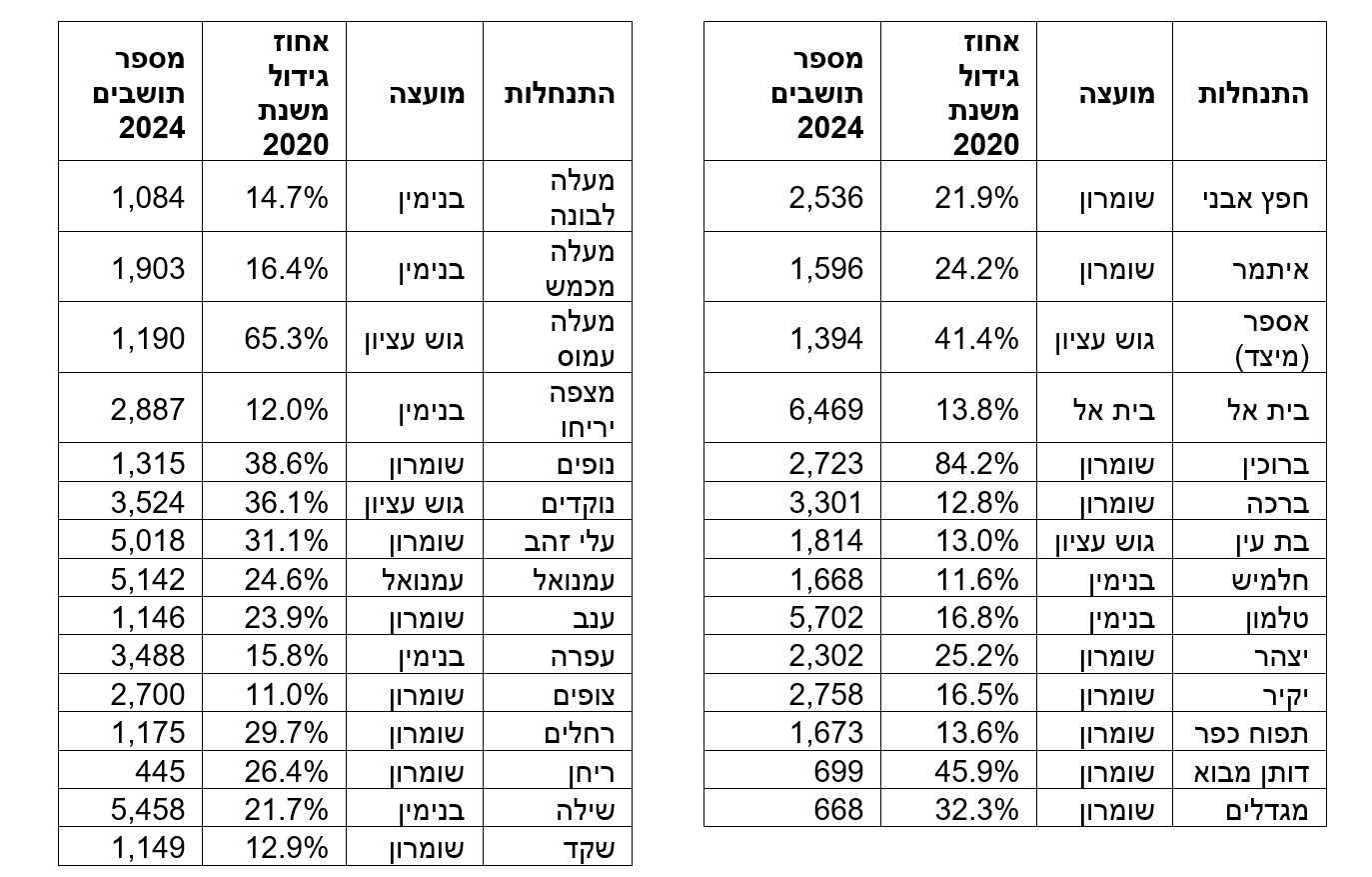 ב. אין הצדקה לעודד התנחלות – שיעור הגידול בהתנחלויות המבודדות הוא מהגבוהים בארץ